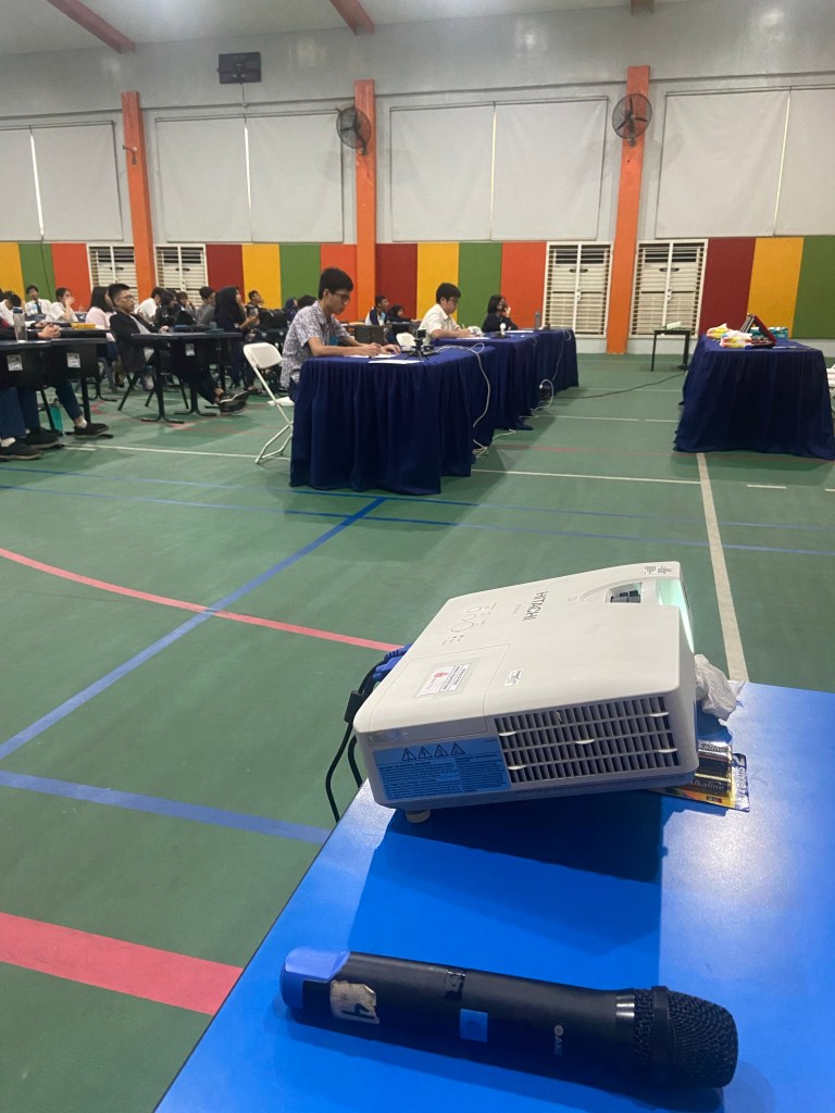 The night before the competition, we stayed in school until around 7pm to make sure everything was set up properly (like tables, chairs and tags) and to finalize everything. We also had a meeting to distribute tasks for the next day so we each know what to do.