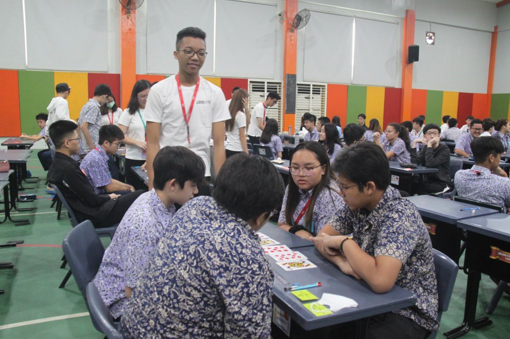 After all the participants had arrived, we started the competition. The atmosphere was kinda awkward and tense at first. We started the competition by playing an ice breaker game, which was a simple math game, the 24 card game. We actually didn’t have enough decks of cards, but we somehow managed to work with what we have and everything worked out well. We decided to incorporate an ice breaker game to loosen up the atmosphere and to also warm their brains up as we know how stressful and tense Math olympiads can be. It’s also something different from other Math olympiads as usually, Math olympiads don’t have any ice breaker games.